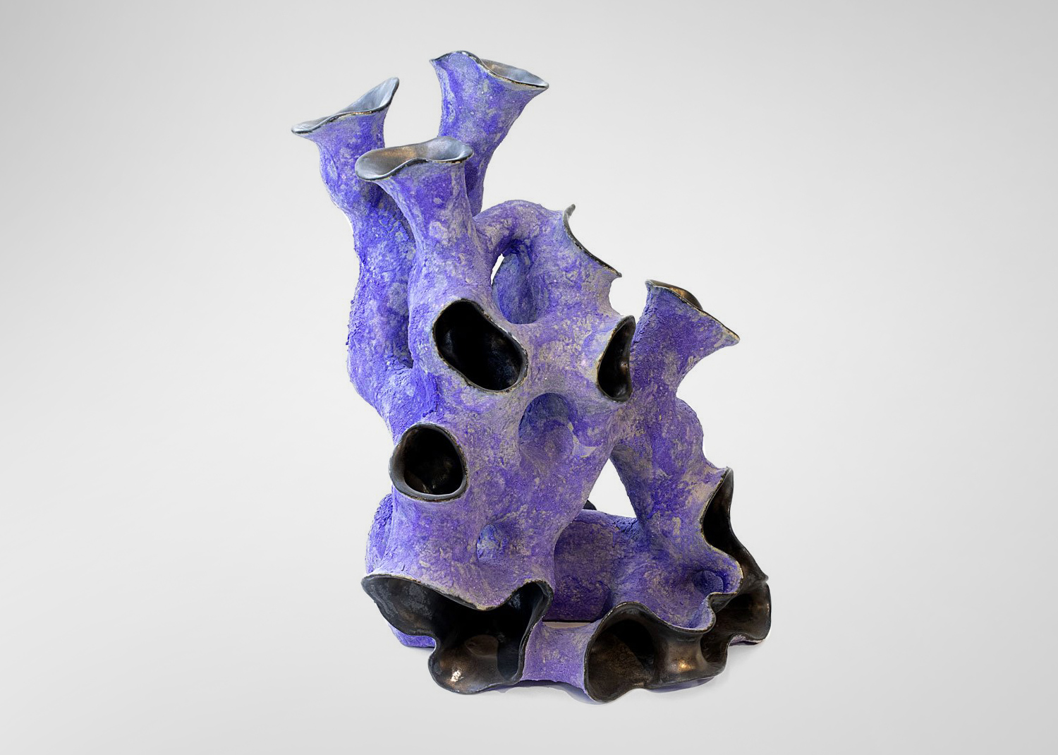 Olivia 19 ¼” × 13 ½” × 11″ Handbuilt, Stoneware, Glaze, Oxidation fired (Featured in the arrangement works Dream Tunnels and Lavender) Sold 2022